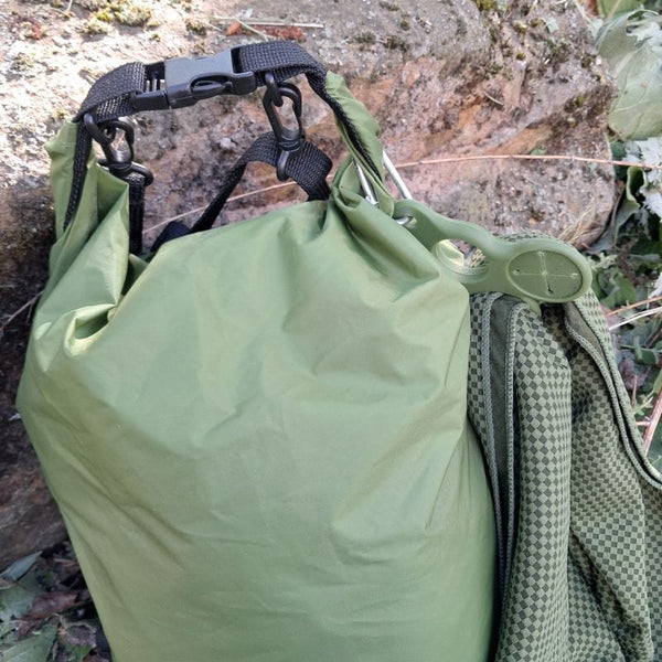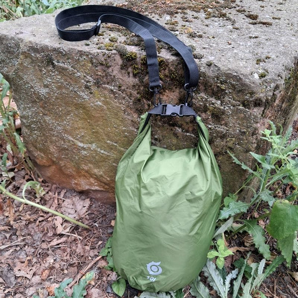 Whether valuables, clothing or other equipment, this ultra-light and waterproof dry bag ensures that everything stays dry and clean. It is made of tear-resistant 70D/210T nylon and all seams are additionally taped. Equipped with a roll-top closure with a quick-release buckle, this transport bag can be sealed waterproof* in three seconds. The nylon fabric can withstand a water column of up to 5000 ml and is therefore ideal for all activities in or on the water ( kayaking, swimming, fishing, canoeing, sailing, boating, rafting, camping) as well as for space in your backpack or .Organize luggage optimally. There are D-rings on the closure buckle, which allow the pack bag to be locked or hung up. The bag can be rolled or folded to save space and fits in any pocket. Its smooth surface also makes it very easy to clean. Available in black and olive.