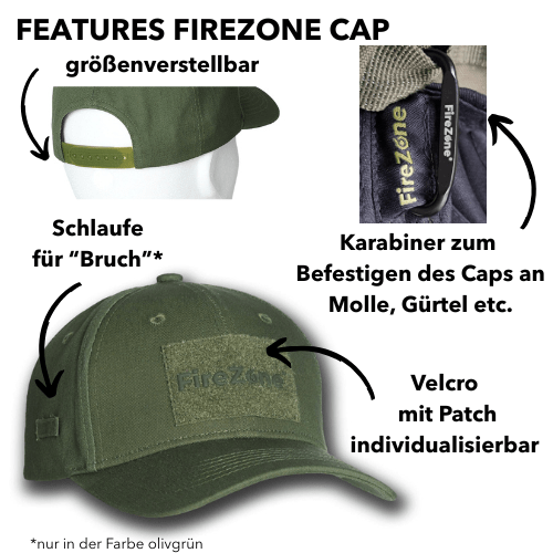 Baseball Cap Mütze mit Patchfläche & Karabiner für Feuerwehr,THW  & Outdoor & Jagd - OnFire Shop