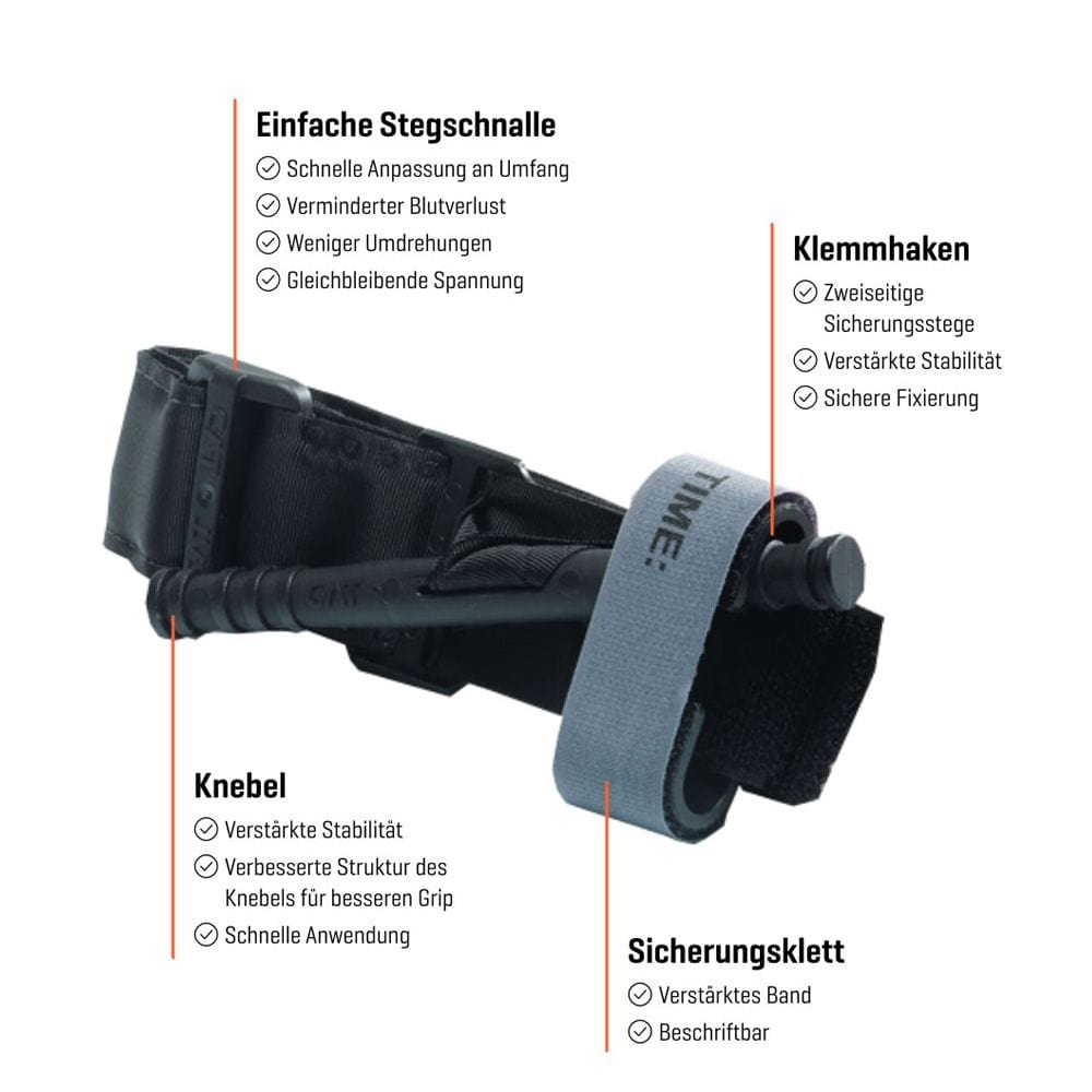 Egal ob in der Betrieblichen Ersten Hilfe oder in der Notfallrettung, bedenken Sie beim Kauf des CAT Tourniquet, dass das System nur von ausgebildetem Personal und in lebensbedrohlichen Notsituationen eingesetzt werden darf – und andere Rettungsmaßnahmen, wie ein Druckverband keinen Erfolg versprechen. Traumatische Amputationen können ein Einsatzzweck sein.