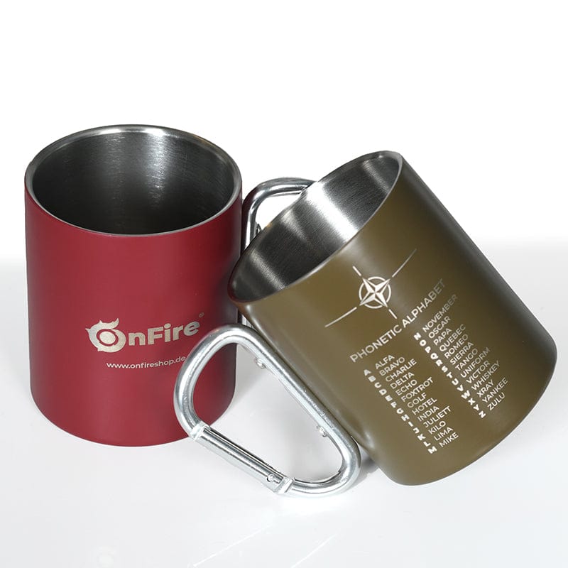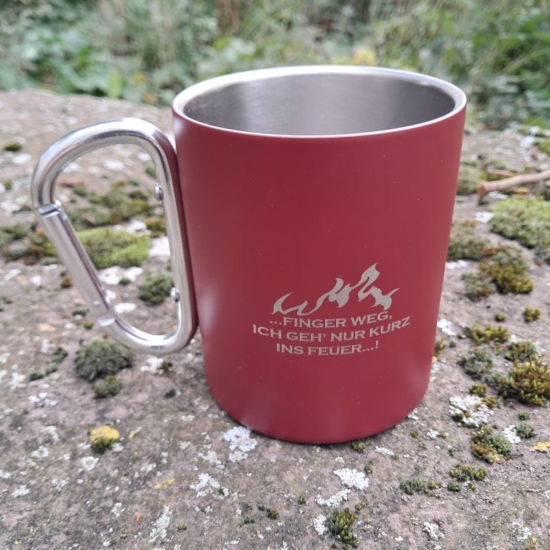 Diese originelle Karabiner-Tasse ist Dein idealer Begleiter ob bei Deinen Touren, Reisen oder Einsätzen. Diese Tasse ist so designt, dass sie überallhin mitgenommen werden kann. Die doppelwandige Karabiner Tasse besteht aus rostfreien Edelstahl und lässt sich ganz einfach mit dem Karabinerhaken am Backpack, Gürtelschlaufe oder allgemein an Molle befestigen. Im Vergleich zu einwandigen Designs halten bei einem doppelwandigen Design die zwei Außenwände die Temperatur des Getränk länger stabil. Der coole Edelstahlbecher eignet sich hervorragend als Geschenkidee (auch zu Nikolaus oder Weihnachten) ob für Outdoor, Survival, Military Fans oder FireFighter. Neben der Farbe der Becher-Außenwand ist die Lasergravur ein besonderer Hingucker: