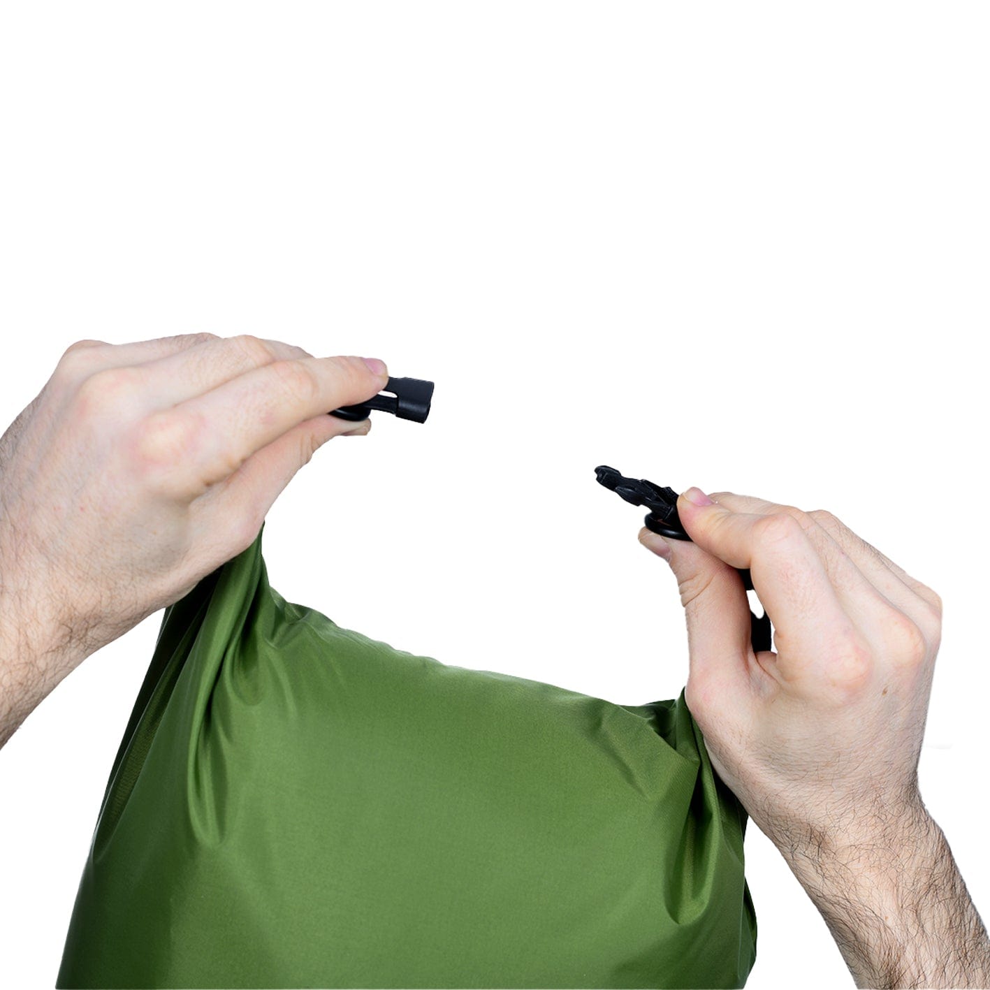 *Hinweis: Die Versiegelung sollte am besten drei- bis fünfmal fest eingerollt werden, damit der Packsack gut schließt. Außerdem sollte der Sack nicht vorsätzlich komplett unter Wasser getaucht werden, da in solchen Fällen durchaus Wasser ins Innere eindringen kann.