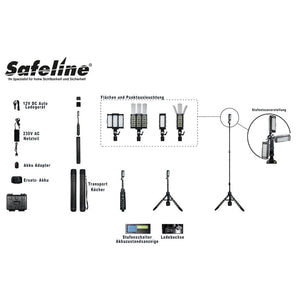 Dank des starken 12 Volt Lithium-Akkus ist es problemlos möglich für Fahrzeuge schwer zugängliche Wege bzw. den Einsatz-/Tatort- oder Unfallort - egal auf welchem Gelände- innerhalb von Sekunden großflächig und kabellos auszuleuchten.