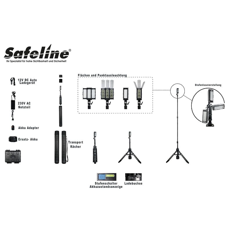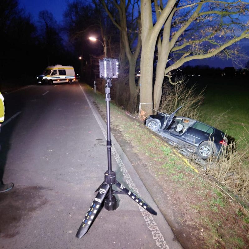 - Großflächiges und kabelloses Ausleuchten des Einsatz-/Unfall oder Tatortorts