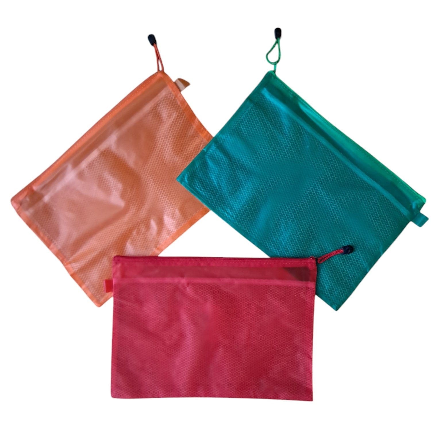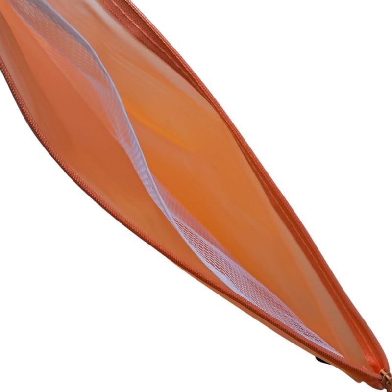 In dieser praktischen Kunststoffmappe im A4-Format oder A5-Format, die mit einem Reißverschluss verschließbar ist, kannst Du Deine Unterlagen praktisch unterbringen. In der superleichten Mappe befindet sich eine dünne Trennwand aus Netz für eine bessere Organisation der Unterlagen. Die Tasche ist in rot, orange und grün erhältlich.
